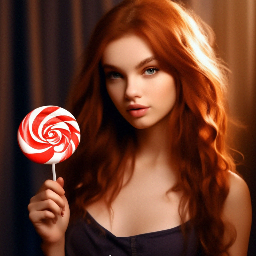 Красивая девушка с иллюстрацией стоящего стикера "лолли поп", горячая" - картинк